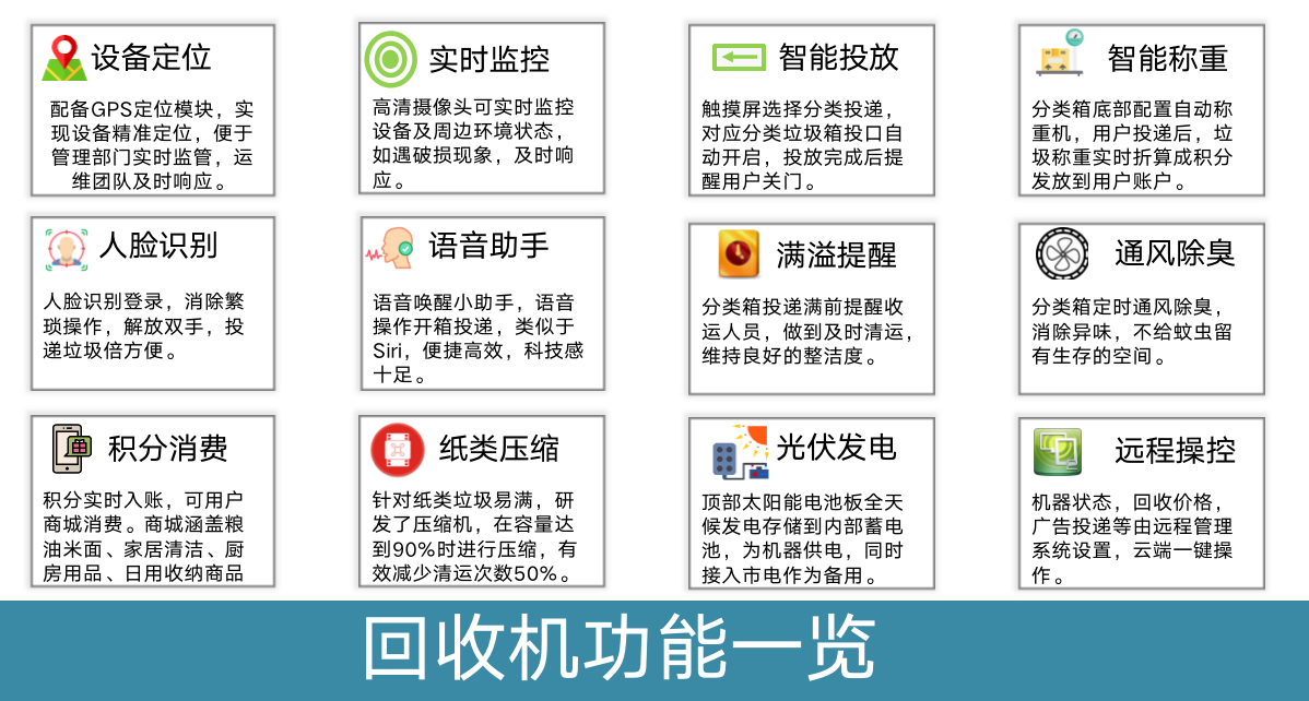 其中,研发的尚资源智能垃圾分类回收机拥有人脸识别、自动开关门、满溢提醒、智能称重、通风除臭、纸类压缩等20多项先进功能,在业界达到领先水平。打造了环卫生态系统,研发出智慧环卫、清运调度、环卫云、垃圾分类、资源回收等多种系统。公司拥有1项发明专利、2项实用新型专利、10余项软件著作权,随着新基建全面启动,孔雀草全体员工正戮力同心,奋力推动公司再上新台阶,利用人工智能、大数据等技术,研发出符合市场需求,解决实际问题的一系列智慧环卫产品,不断丰富产品应用场景,为环卫行业注入源源不断创新动能。
