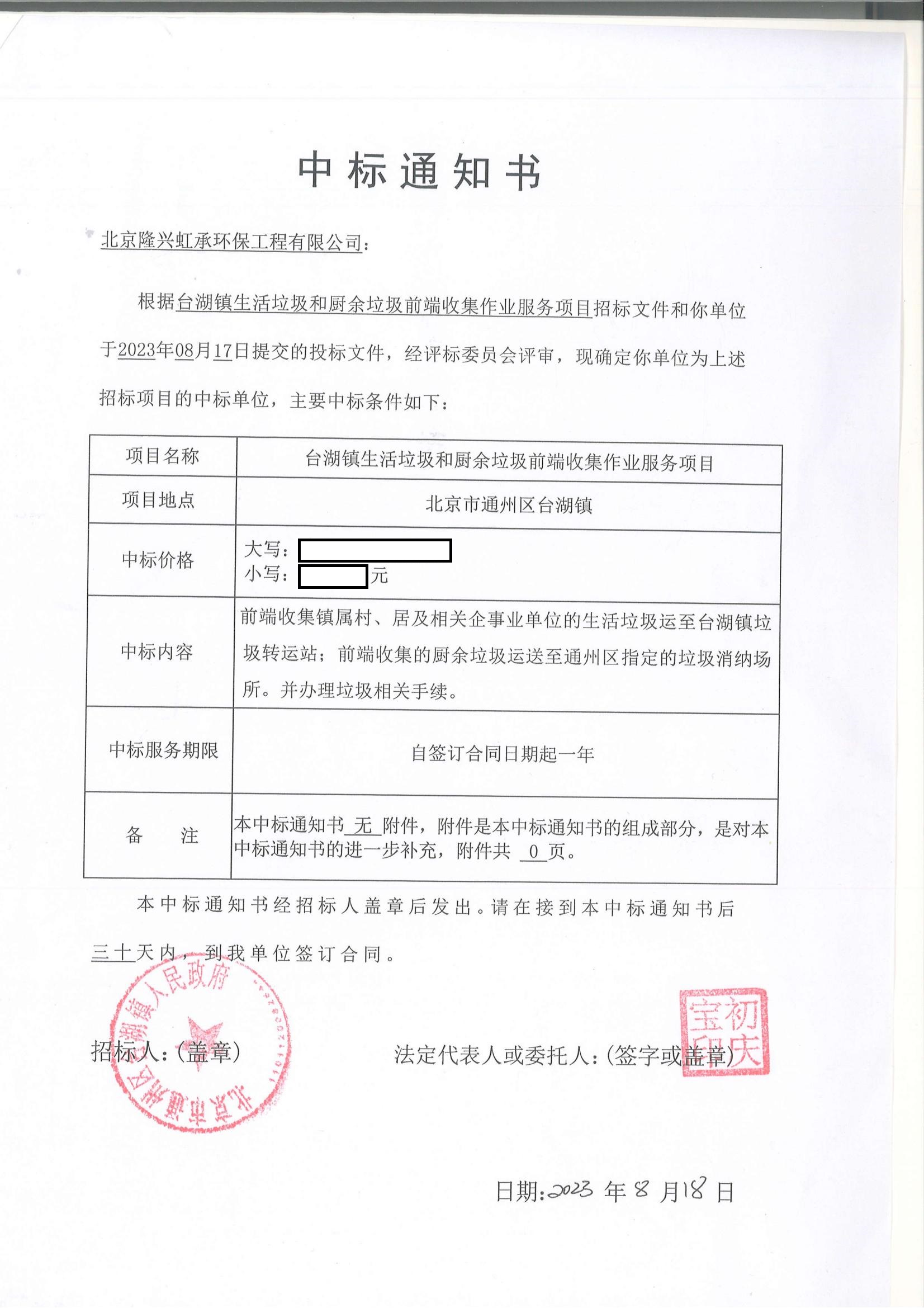 近日,北京隆兴虹承环保工程部在管理层的带领下,凝心聚力、乘势而上,谱写市场新篇章,中标台湖镇生活垃圾和厨余垃圾前端收集作业服务项目。